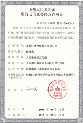 增值許可證: 晉B2-20080011 互聯(lián)網(wǎng)備案號: 晉ICP備08001298號 |